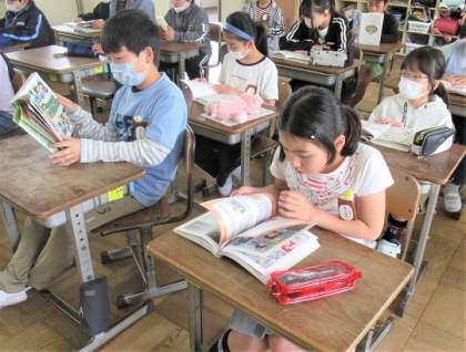 5年生の様子です。各自、好みの本を選んで読んでいます。