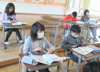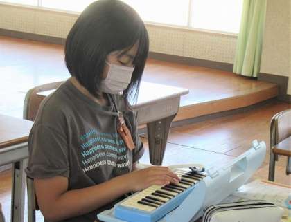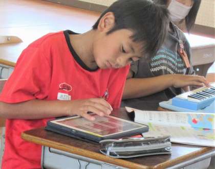 鍵盤ハーモニカやタブレット鍵盤で、実際の音を確認していました。