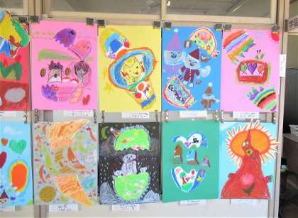 2年生の図工「ふしぎなたまご」の作品展示です。