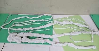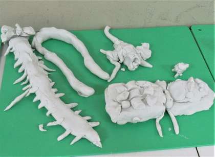 「むかでさん」「うさぎさん」「へび」。みんな楽しく想像して作りました。