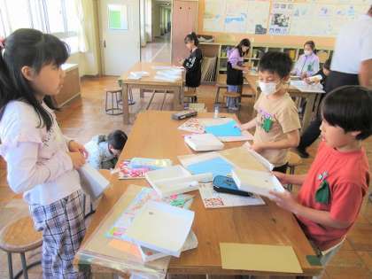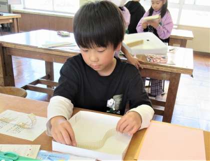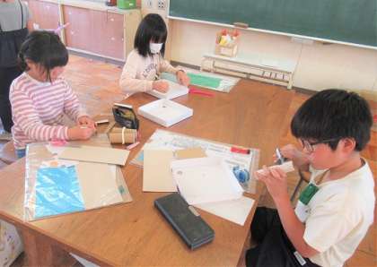 材料を生かした迷路をイメージして作っていました。できあがりが楽しみです。