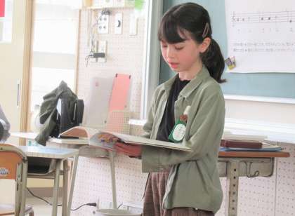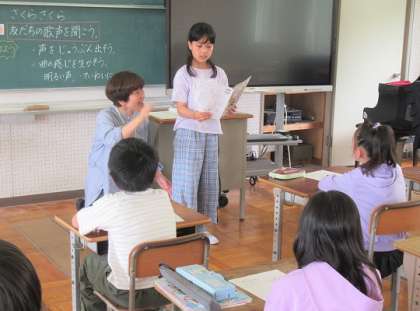 全員で練習したあと、友達の歌声を聞き合っていました。