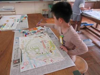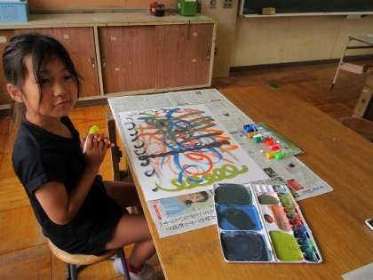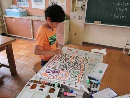 ふでを使い、イメージを膨らませながら取り組んでいます。