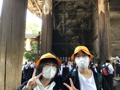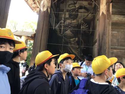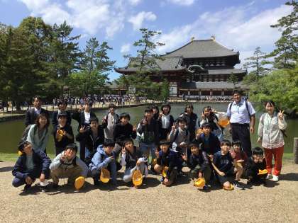 鏡池で全員写真。大仏殿へ。