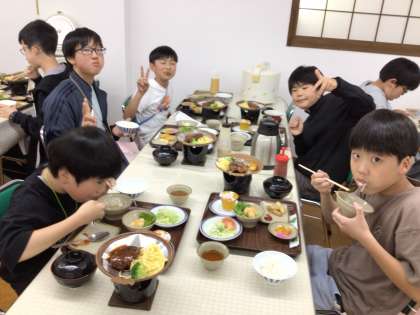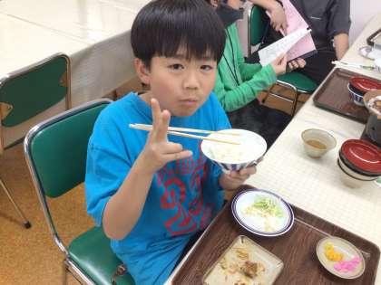 ご飯4杯食べた児童が3人ほど。みんな元気に、夕食も済ませました。