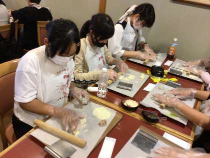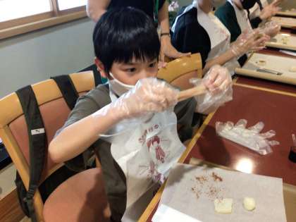 ニッキ味、抹茶味の八ツ橋を作ります。