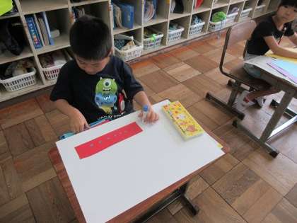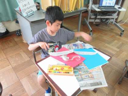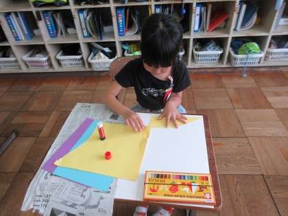色画用紙を破りながら、自分たちのつくりたいものをイメージしています。