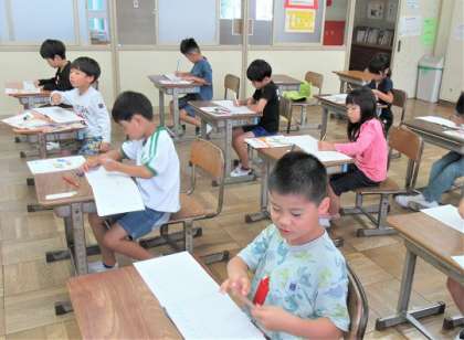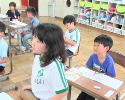 「あわせていくつ」をたし算の式で表すしかたを考えていました。