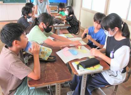 話す材料を集め、付箋に書いて組み立てを考えていました。