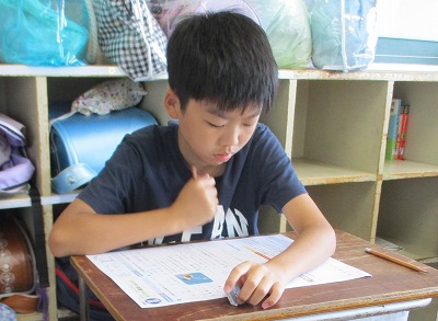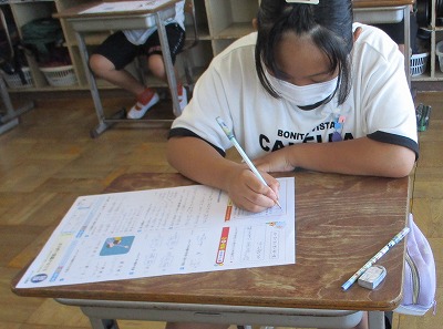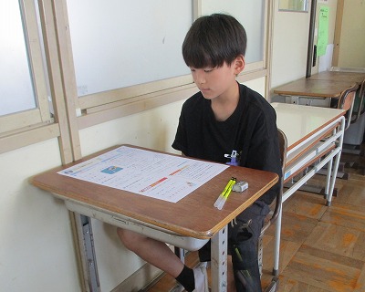 今日の国語は、テストを行っていました。みんな一生懸命取り組んでいました。解き終わった後、何度も見直し、間違いがないかを確認していて、高学年らしいよい姿だと思いました。