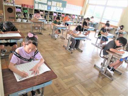 今日は、全学年で「旭東っ子漢字検定」を行いました。