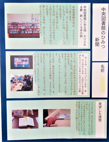 7/13(土) よくまとめたね 公開日 2024/07/13 更新日 2024/07/13 旭東+(プラス) 校外学習で中央図書館に出かけた3年生のまとめです。写真を取り込みながら、各自が知ったことをまとめています。