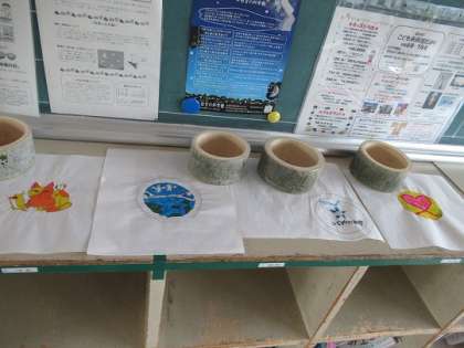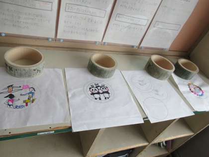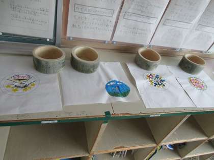 4年生教室ロッカーの上に、製作途中の竹灯籠が置いてありました。