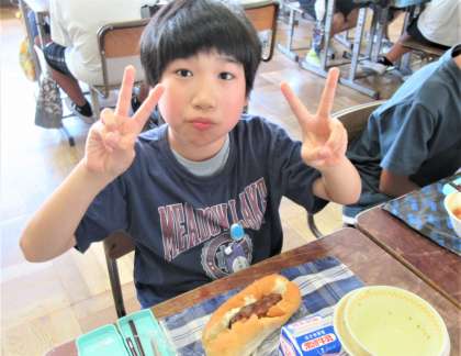 ミルクロールパンを縦に切り、フランクフルトやサラダを挟んで食見られました。見られました。