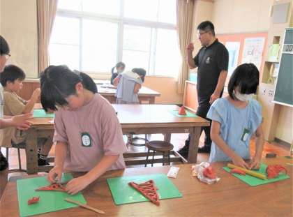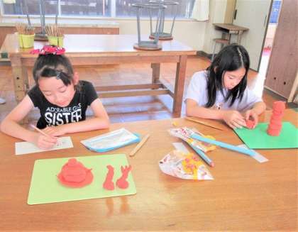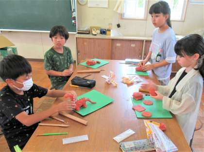 4年生の図工では、「立ち上がれねん土」の作品づくりをしていました。