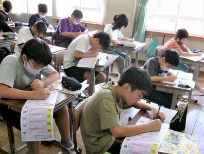 金曜の朝はドリルタイム。6年生の様子です。