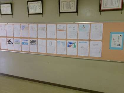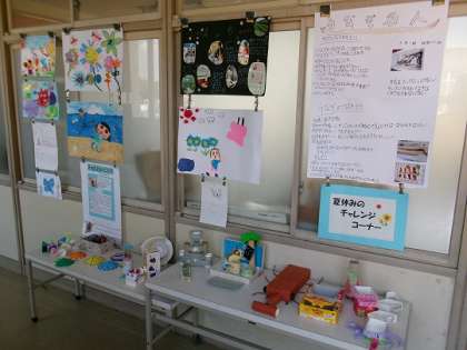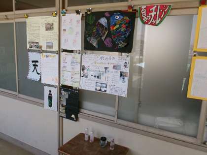 校内のあちこちに、夏休みに児童が作った作品が展示されています。