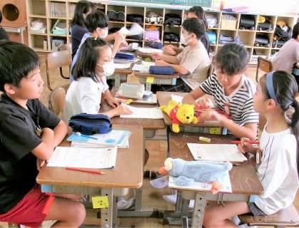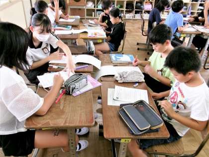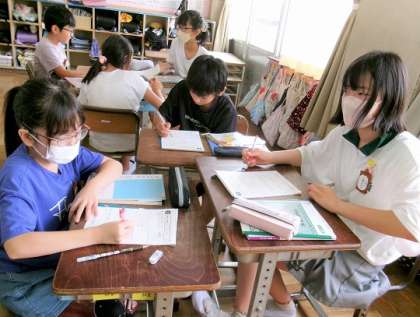 答え合わせをしたあと、グループで教え合って課題解決に努めていました。