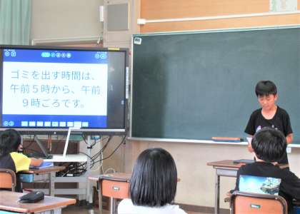 9/11(水) 学習発表 4年生 2 公開日 2024/09/11 更新日 2024/09/11 旭東+(プラス) 環境問題について、各々が調べたことや夏休みにやってみたことなどを含んで、プレゼンを行いました。