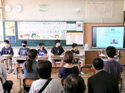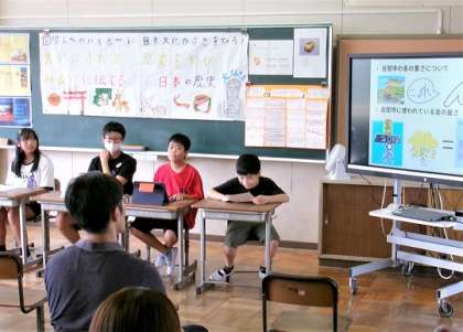 9/11(水) 学習発表 6年生 2 公開日 2024/09/11 更新日 2024/09/11 旭東+(プラス) グループごとに、奈良・京都について調べたことや考えたことを発表していました。6年生でも、大勢の前で発表するのは緊張した様子。よい経験となりました。