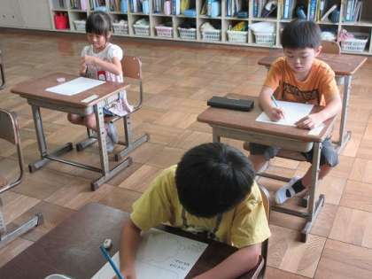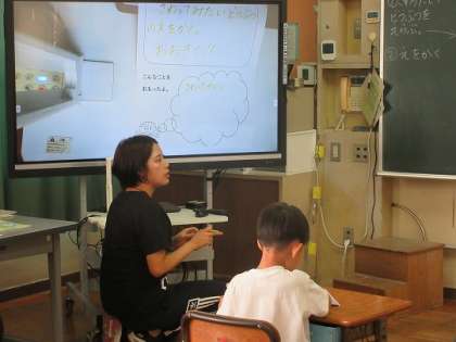 いきものの名前やさわったかんじなどを話し合い、自分たちでプリントをまとめています。