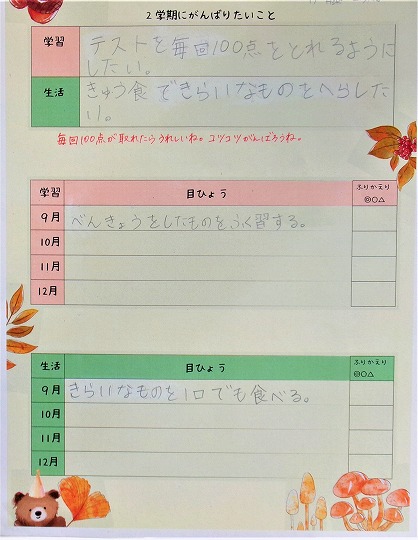 3年生の教室掲示、「2学期の目ひょう」です。