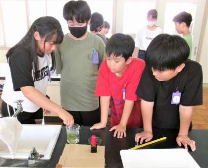 6年生の理科では、植物の葉にでんぷんがあるかを調べるため、あじさいの葉を使って実験していました。