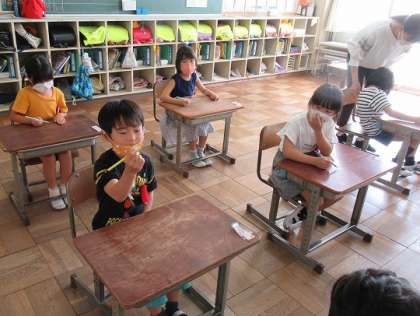 1年生の書写では、書写コンクールの練習をしていました。鉛筆の持ち方、姿勢などを確認して、一文字ずつ丁寧に練習しています。