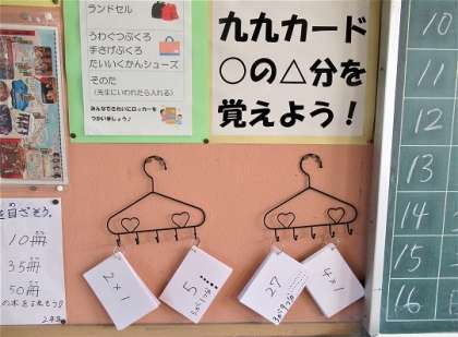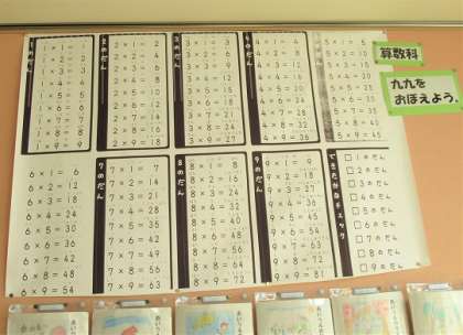 10/16(日) 覚えよう 公開日 2022/10/16 更新日 2022/10/16 旭東+(プラス) 2年生の算数では、九九の学習をしています。教室背面には、九九の掲示や覚えるためのカードが。九九の習得は、これからの算数には欠かせません。何度も繰り返し練習してマスターしたいですね。