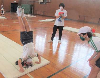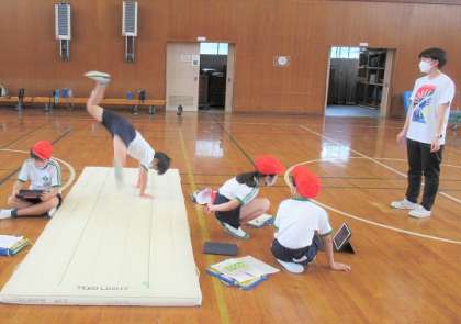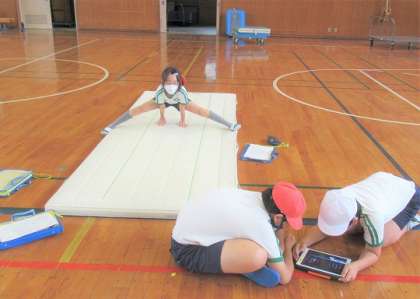 タブレットを使って、それぞれの技を動画で撮り、修正点を考えながら練習に取り組みました。練習を経て、今後は技の発表会を行う予定です。