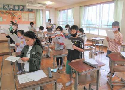 練習を積み重ねて、学習発表会でも歌声を披露する予定です。のびのびとした歌声を聞いていただけるとよいです。