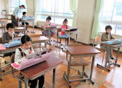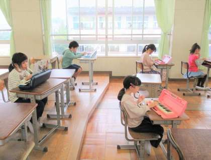 2年生の音楽では、鍵盤ハーモニカの学習をしていました。「こぎつね」の演奏をしています。