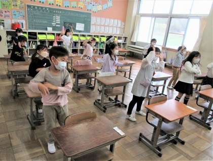 最後は、みんな立ち上がって楽しそうに踊っていました。元気なダンスを学習発表会で見ていただけるとよいです。
