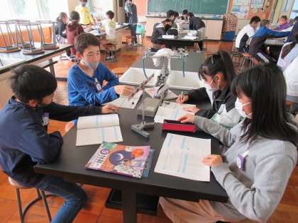 実験結果を見ながら、グループでどのような決まりがあるかを考えていました。
