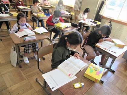 3年生の国語では、「ことわざと故事成語」の学習をしていました。各自が国語辞典を使って、ことわざや故事成語の意味を調べています。