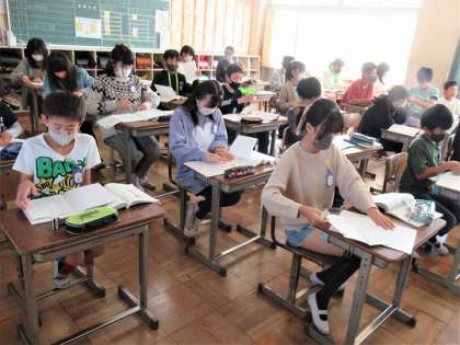 6年生の国語では、「調べた情報の用い方」の学習をしていました。「『鳥獣戯画』を読む」から工夫点を学んでいました。