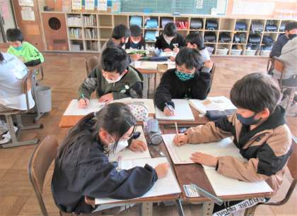 グループで、和紙・洋紙の違いについて読み取り、表にまとめていました。