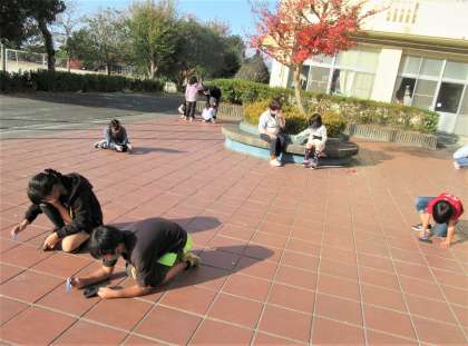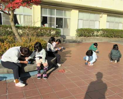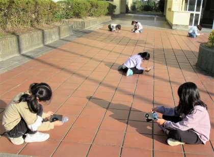 虫眼鏡で光を集めると、どうなるのかを実験しています。