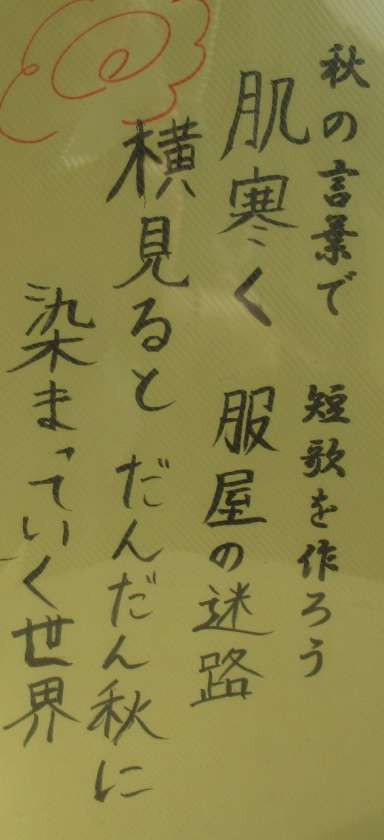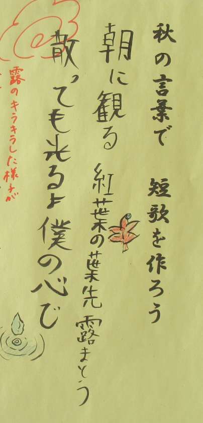 6年生の国語作品展示です。秋の言葉を使って、三十一音で表現しています。
