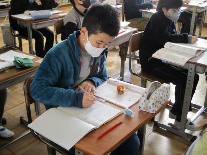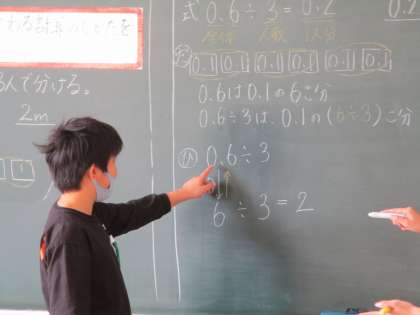 4年生の算数では,「小数のわり算」の学習をしていました。