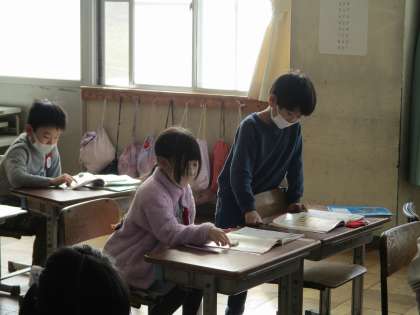宝がある位置の表し方(上、下、左、右)を考えて、発表していました。
