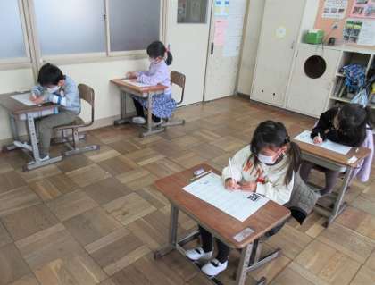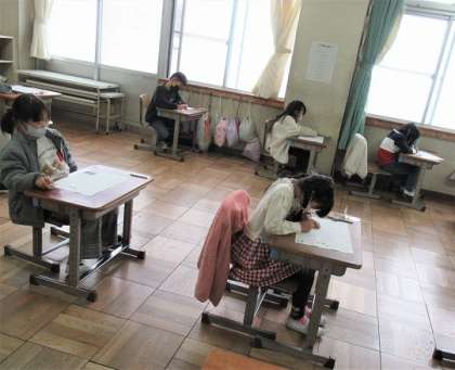 一文字ずつ丁寧に答案用紙に書き込んでいました。合格できるといいね。