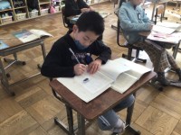 まず、書写練習帳に書かれているお手本にそって、なぞり書きをしています。