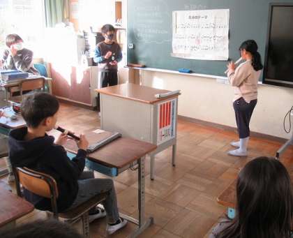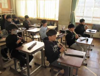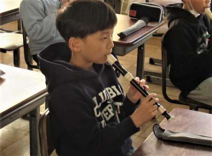 朝の会の時間に、どこかからリコーダーの音色が……。4年生の教室です。
