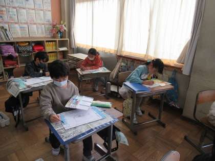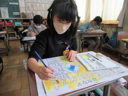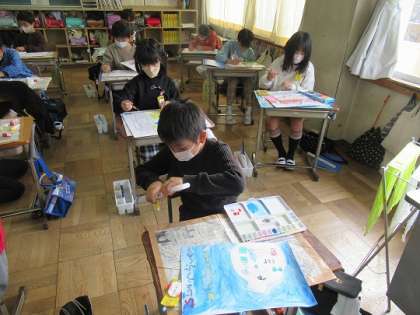 3年生の総合的な学習では、校内で感じる危険をポスターにして伝える学習をしていました