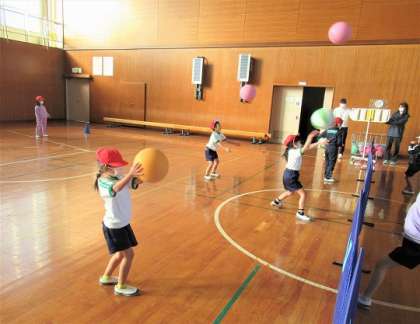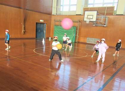 相手コートのコーンを越えたら得点になるボールゲームをしていました。