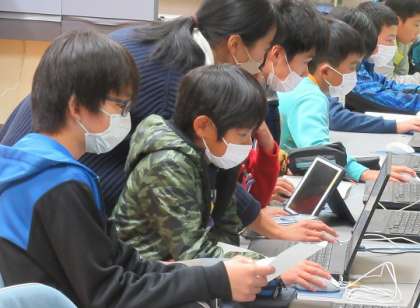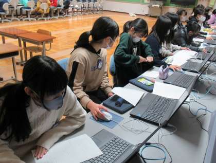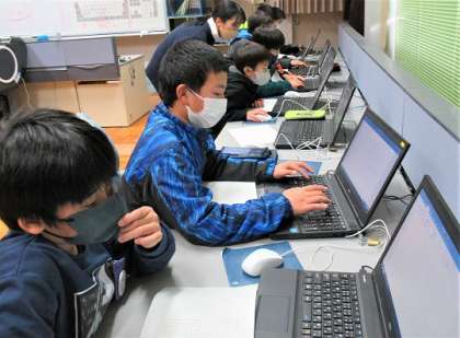 6年生は、コンピュータ室で卒業文集づくりをしていました。