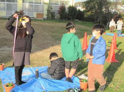 太陽の向きが変わるから、影の向きも変わることがわかりました。