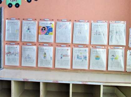 1年生の生活科「しごと はっけんカード」の掲示です。