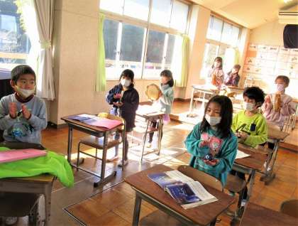 体を揺らしながら、ノリノリで歌っている児童もいました。